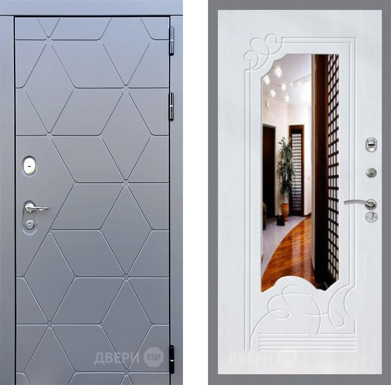 Входная Дверь Стоп КОСМО ЗкркалоФЛ-147 Ясень белый 860x2050 мм