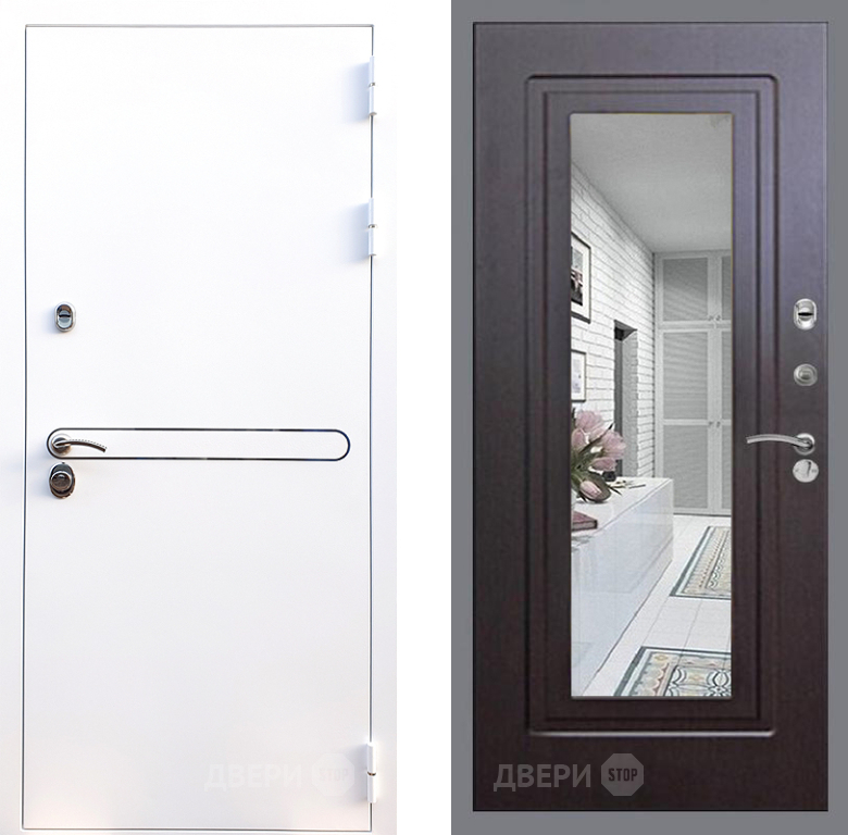 Входная Дверь Стоп Лайн Вайт Зеркало ФЛ-120 Венге 960x2050 мм