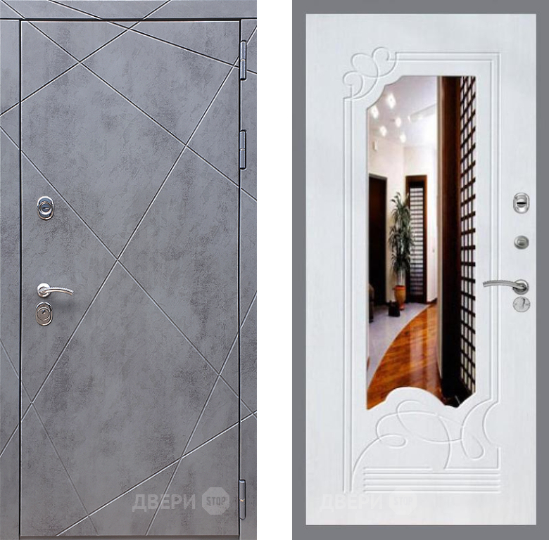 Входная Дверь Стоп Лучи ЗкркалоФЛ-147 Ясень белый 960x2050 мм