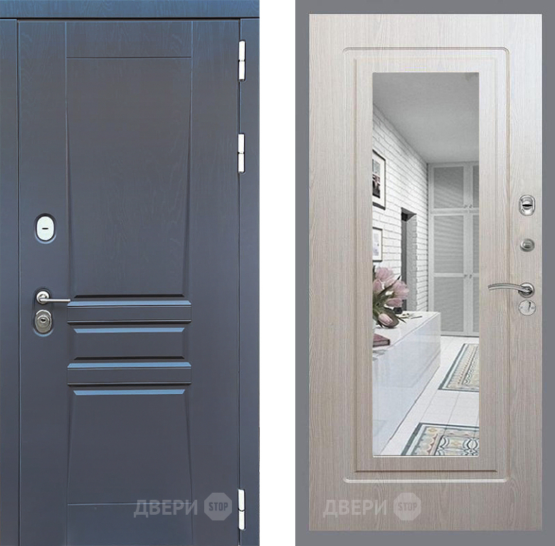 Входная Дверь Стоп ПЛАТИНУМ Зеркало ФЛ-120 Беленый дуб 860x2050 мм