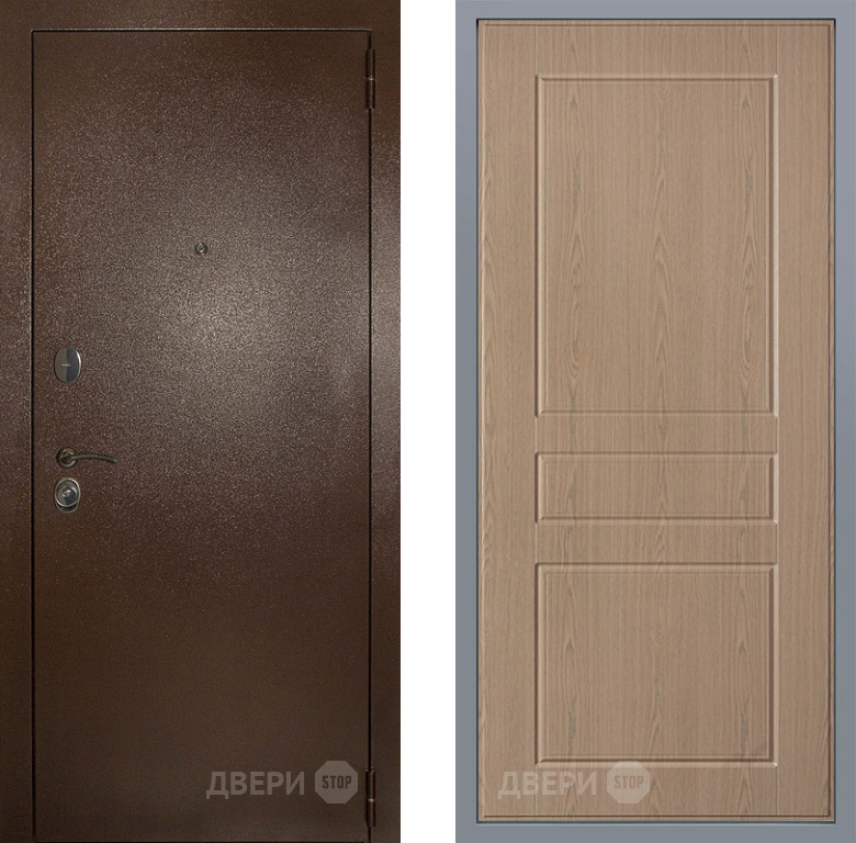 Входная Дверь Заводские двери Эталон 3к антик медь К-2 Беленый дуб 860x2050 мм