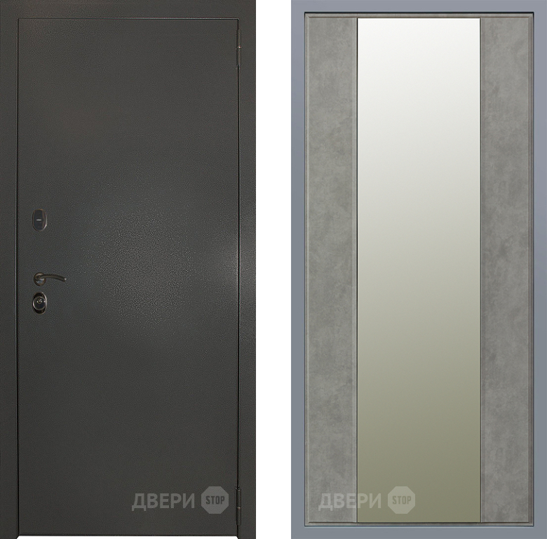 Входная Дверь Заводские двери Эталон 3к антик серебро Зеркало Макси Бетон темный 860x2050 мм
