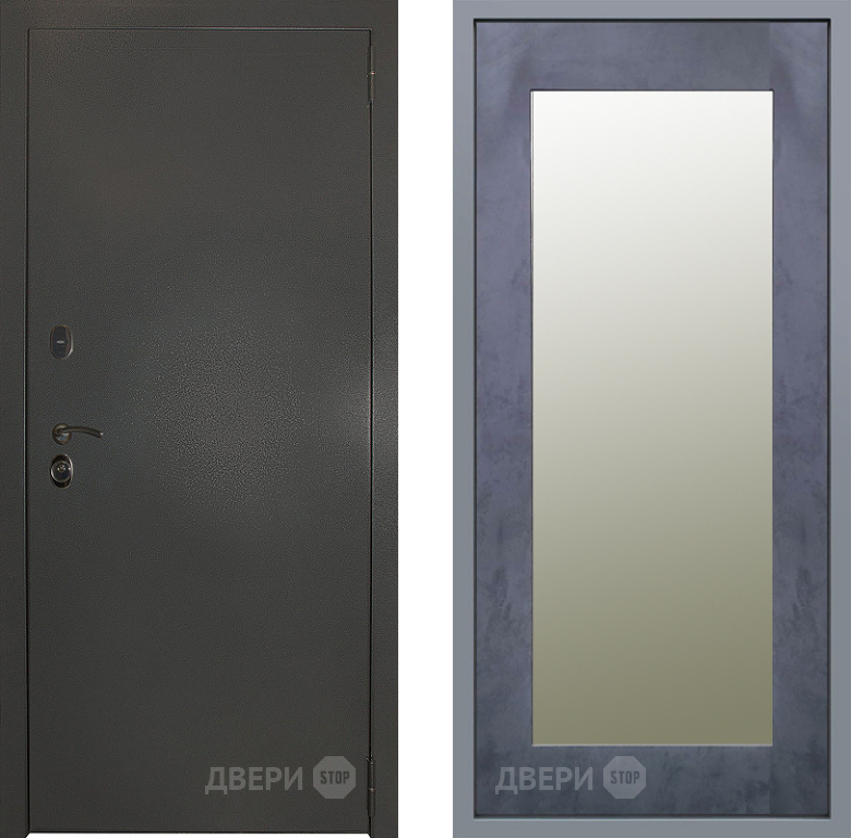Входная Дверь Заводские двери Эталон 3к антик серебро Зеркало Модерн Бетон темный 860x2050 мм