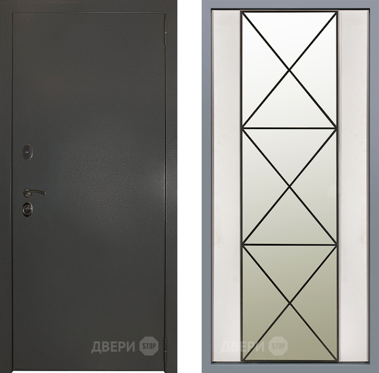 Входная Дверь Заводские двери Эталон 3к антик серебро Зеркало Перфекто Структурное дерево 960x2050 мм