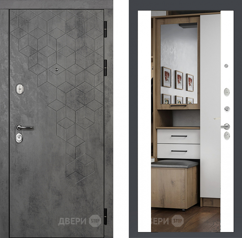 Входная металлическая Райтвер Бетон 1501 с зеркалом Белый матовый в Рузе 860х2050 мм