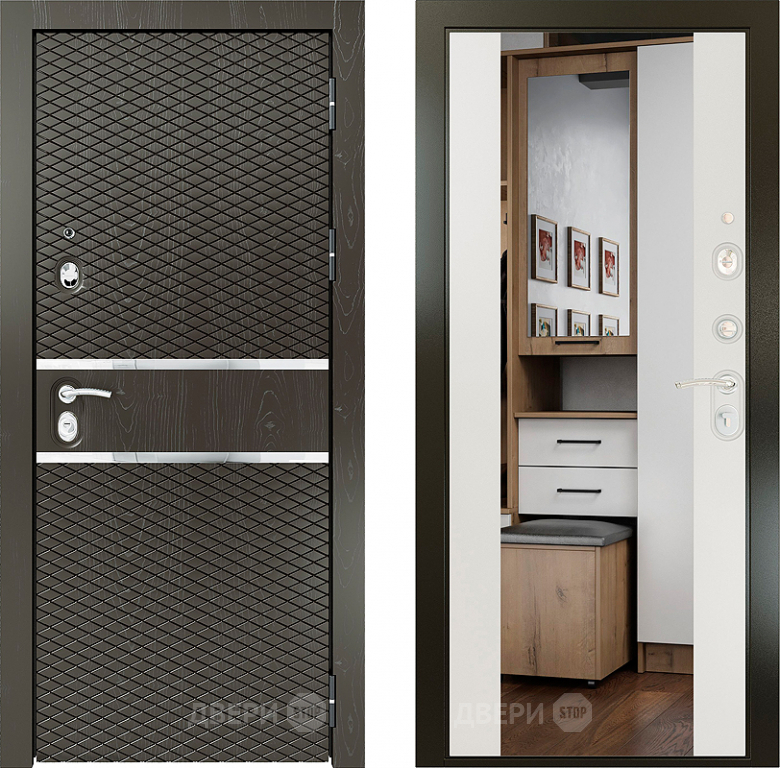 Входная металлическая Райтвер Плаза Шоколад с зеркалом Белый матовый в Рузе 860х2050 мм